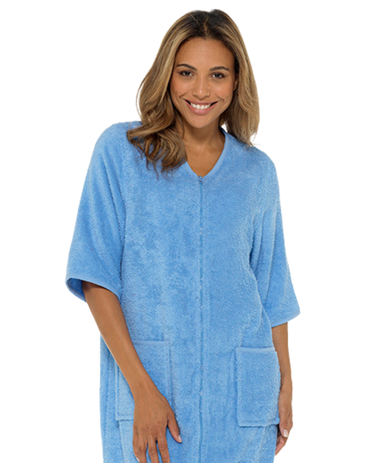 Women's 100% Cotton Towelling Zip 3/4 Sleeve Dressing Gown