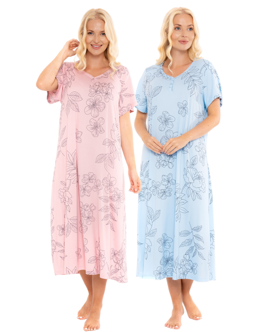 Summer Meadow Print 100% Cotton Jersey Short Sleeve Nightdress (NW200226/7)