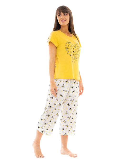 Yellow Bee 100% Cotton Short Sleeved Cropped Leg Pyjamas (NW108022)