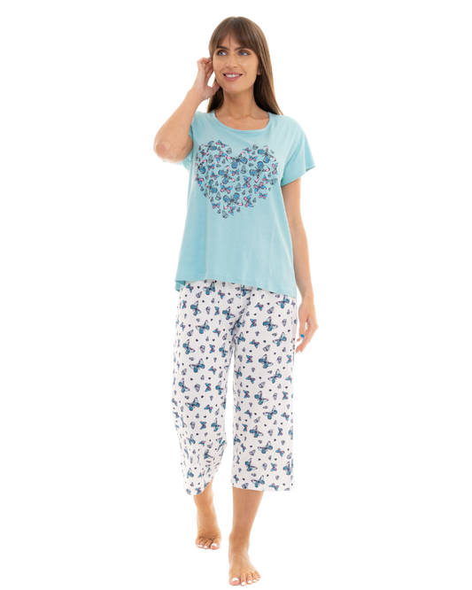 Duck Egg Butterfly 100% Cotton Short Sleeved Cropped Leg Pyjamas (NW107355)