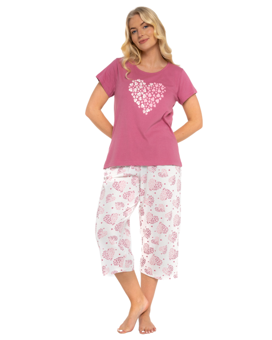 Raspberry Heart 100% Cotton Short Sleeved Crop Leg Pyjamas (NW107658)