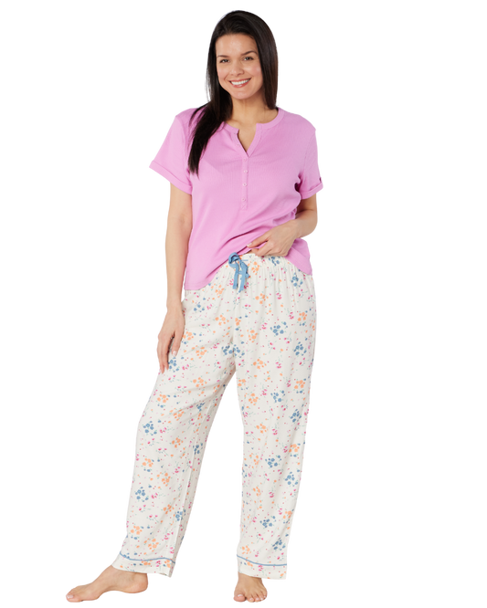 M&S Cotton Elastane Ribbed T-shirt and Floral Trouser Pyjama - price per pack of 12